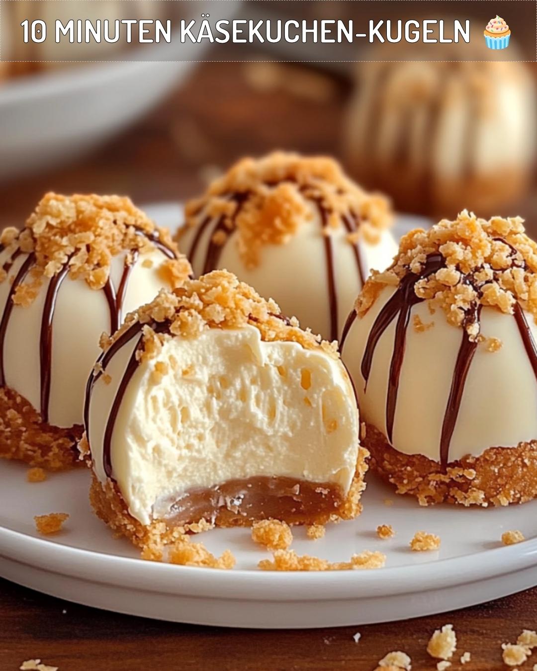 Ein einfaches, schnelles Blitzrezept für unwiderstehliche Käsekuchen-Kugeln mit Frischkäse und Schokolade – perfekt für jede Gelegenheit!.
