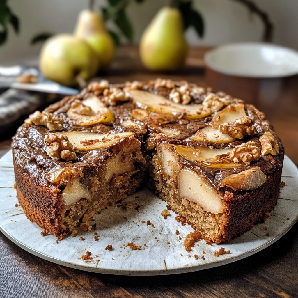 aftiger Birnenkuchen mit Schokolade und Walnüssen, perfekt für gemütliche Herbstnachmittage! ![]()