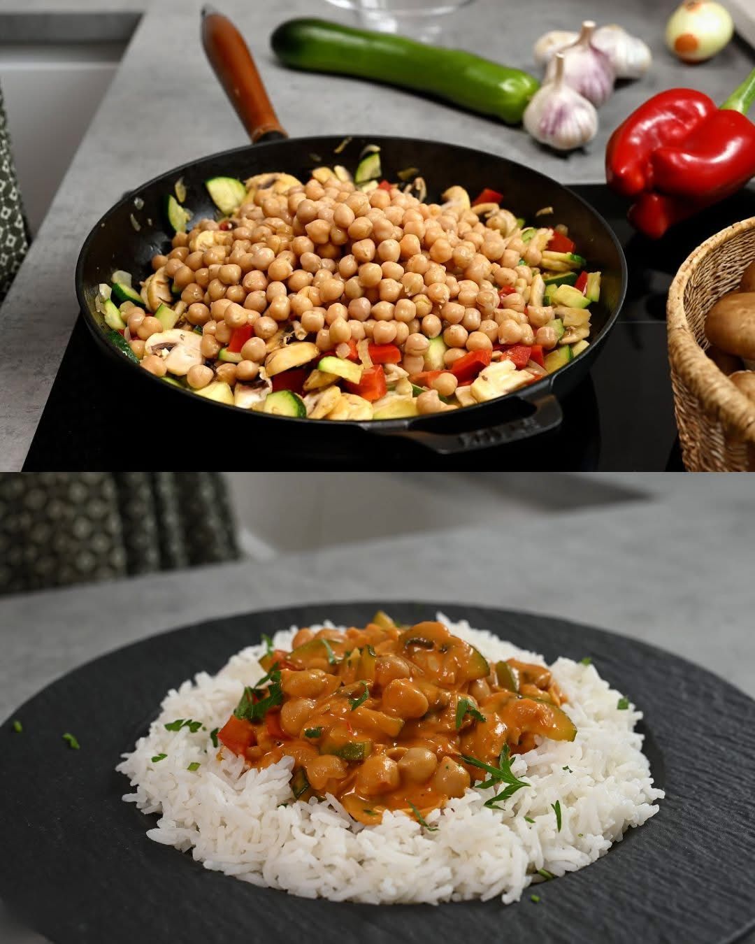 Cremiges Kokos-Kichererbsen-Gemüse-Curry mit Basmatireis