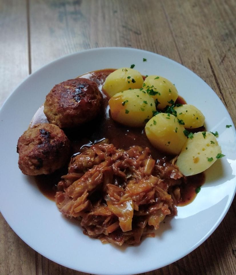 Omas Rezept für Rinderbraten mit Knödel und Blaukraut