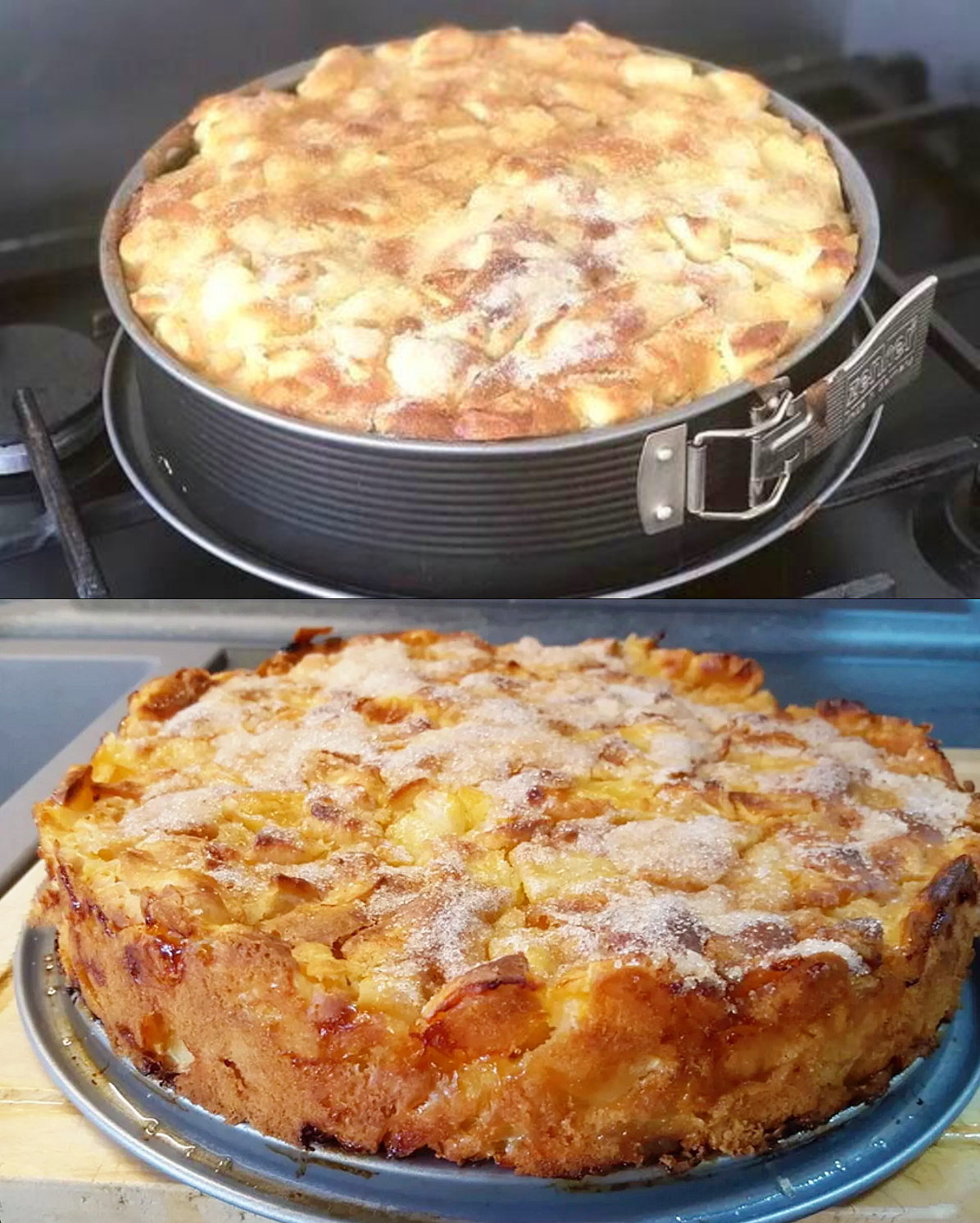 Ich hoffe, Sie können die Rezepte mit Ihren Freunden und Familie teilen und mir einen Kommentar hinterlassen bitte. Zutaten: Fett für die Form 150 g Margarine oder Butter, weiche 120 g Zucker 1/2 Packung Backpulver 220 g Mehl 1,5 kg Äpfel, geschälte, entkernte 3 Eier Butter zum Bestreichen Zimt Zubereitung:
