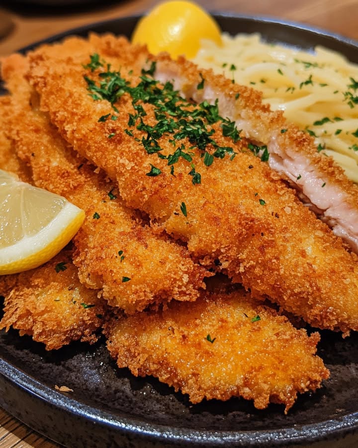 Zutaten:– 4 Kalbsschnitzel (je etwa 150-200 g)– 100 g Mehl– 2 Eier– 150 g Semmelbrösel– 2 Zitronen (Saft und etwas Schale)– 100 g Butter– 2 EL frische Petersilie, gehackt– Salz und Pfeffer nach Geschmack– Öl zum BratenAnleitung: