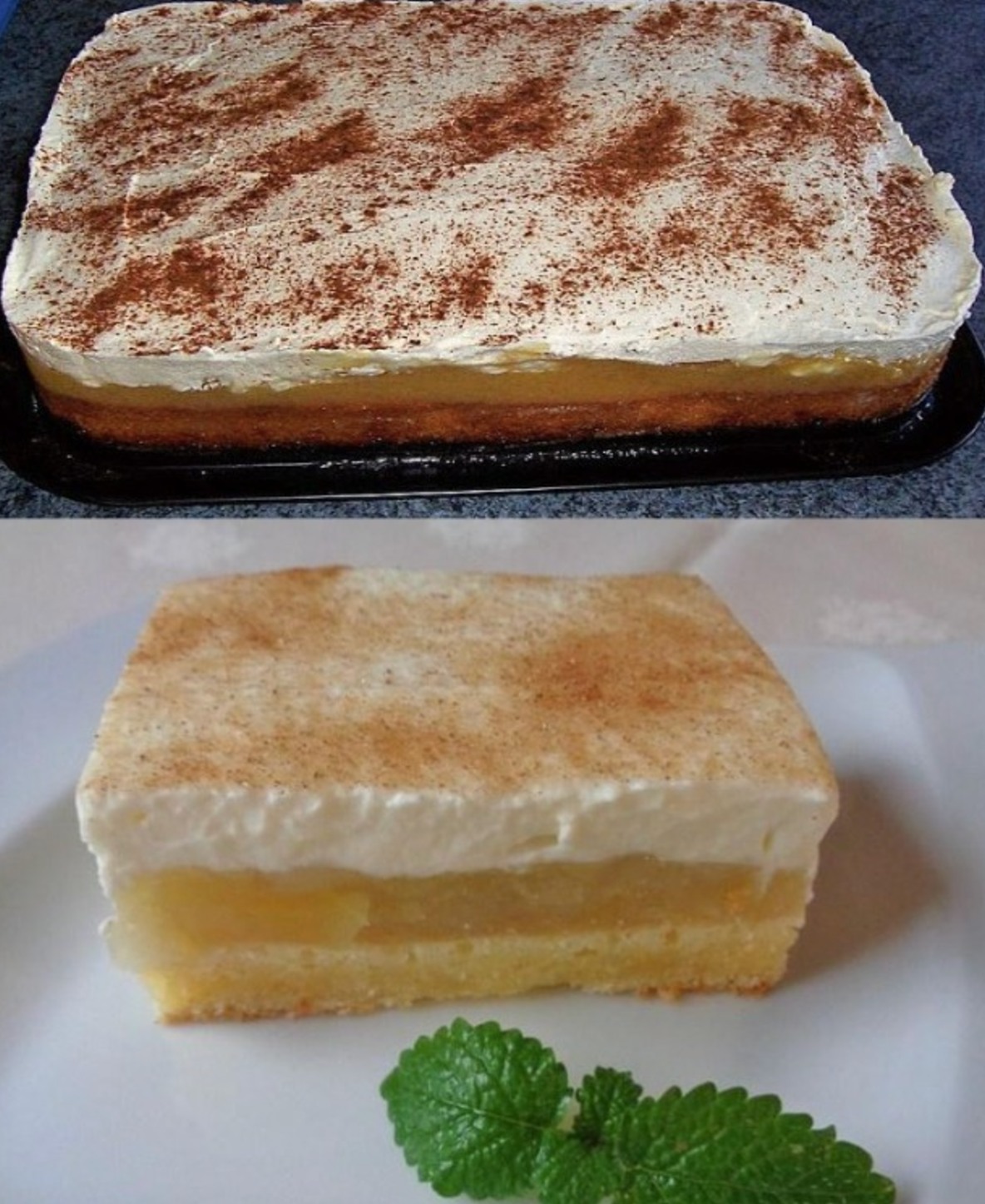 Freunde wenn Sie meine Beiträge in Ihrem Feed sehen, hinterlassen Sie bitte ein Kommentar Zutaten: 600 gSchmand 6 ELMilch 750 gApfelmus 3 TLBackpulver 150 gMehl 3Eier (für den Teig) 150 gZucker 150 gMargarine 1 PKVanillepuddingpulver 3Eier Zubereitung: