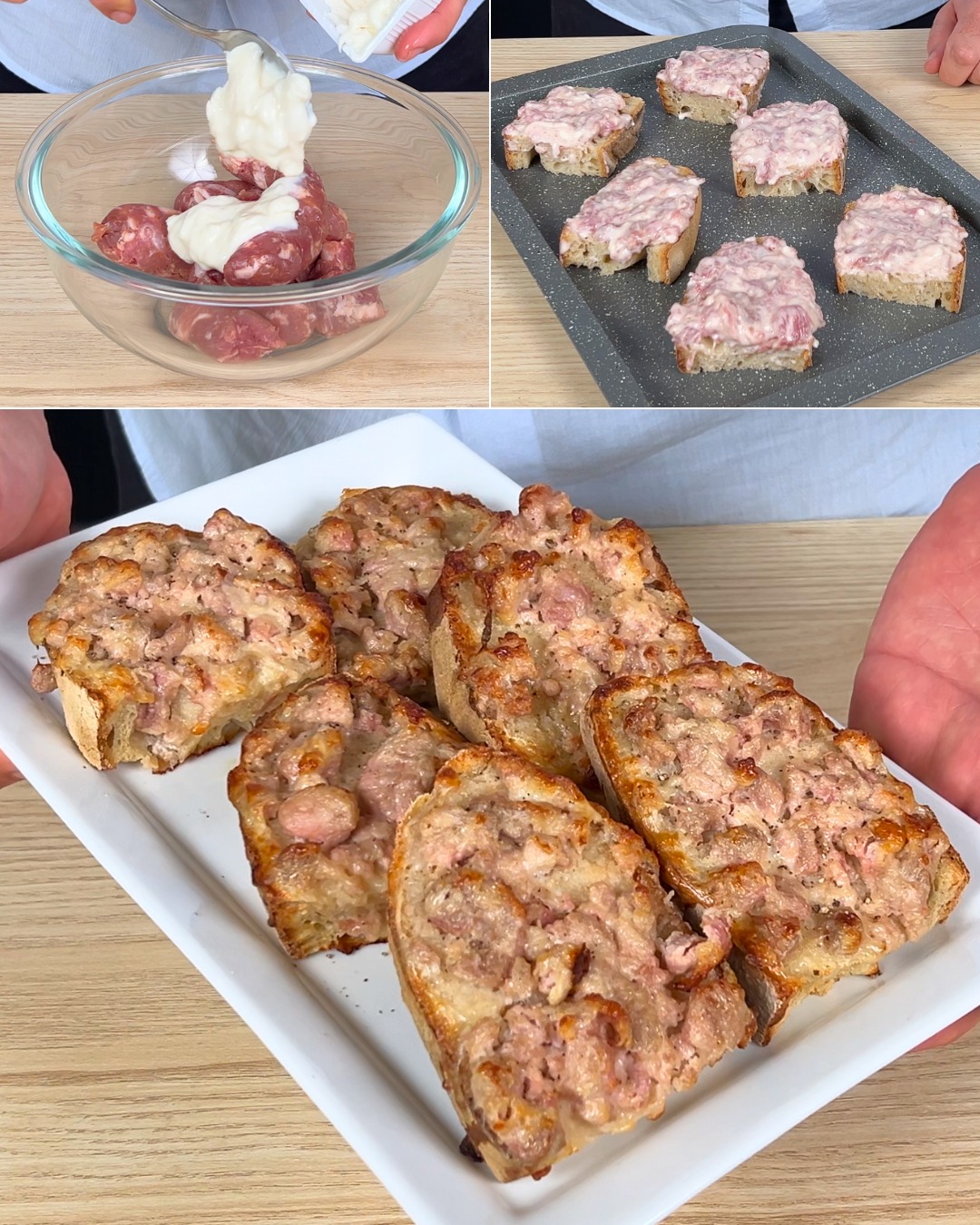 Zutaten für 4 Personen: 8 Scheiben selbstgebackenes Brot (oder Baguette) 250 g frische Wurst 200 g Stracchino -Käse 1 Prise schwarzer Pfeffer Frischer Rosmarin (optional, zur Dekoration) Zubereitung: