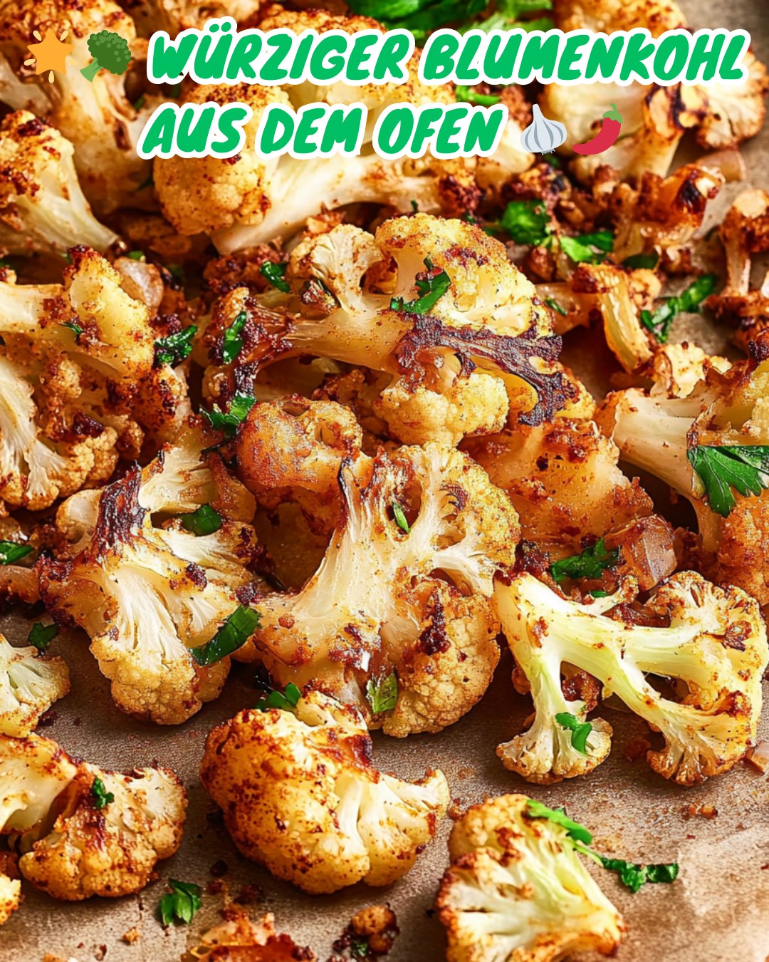Perfekte Beilage oder Hauptgericht, aromatisch gewürzt und in nur 30 Minuten zubereitet!Zutaten (England-Maßeinheiten):1000 g Blumenkohl70 g Zwiebel2 Knoblauchzehen45 ml OlivenölGewürze:5 g Salz5 g Pfeffer15 g Paprikapulver2,5 g Chiliflocken10 g italienische Kräuter15 ml Sojasauce2,5 g MuskatnussFrische Petersilie oder Schnittlauch zum GarnierenAnweisungen:Vorbereitung: