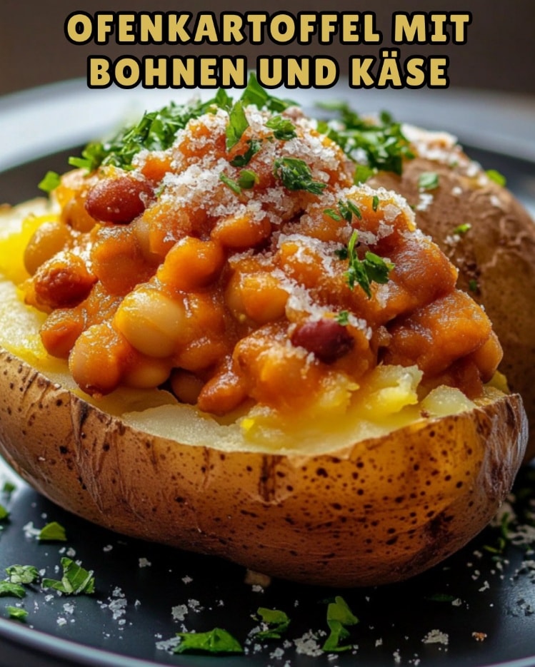 Deluxe Ofenkartoffel mit Baked Beans und Käse