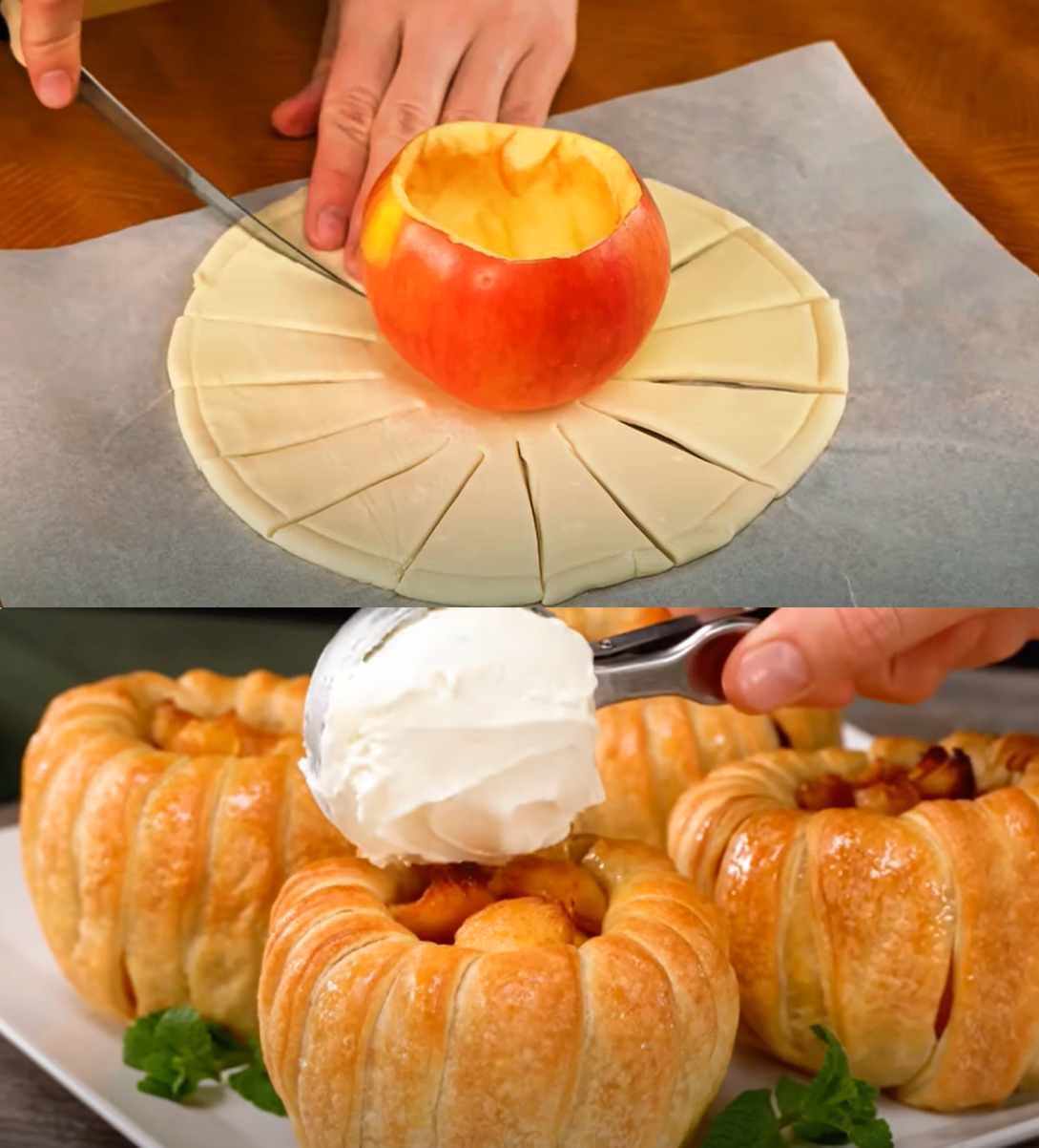 Ich hoffe, Sie können die Rezepte mit Ihren Freunden und Familie teilen und mir einen Kommentar hinterlassen bitte. Zutaten: 400 g Blätterteig 4 Äpfel 30 g Butter 20 g Zimt 40 g Brauner Zucker Zubereitung: