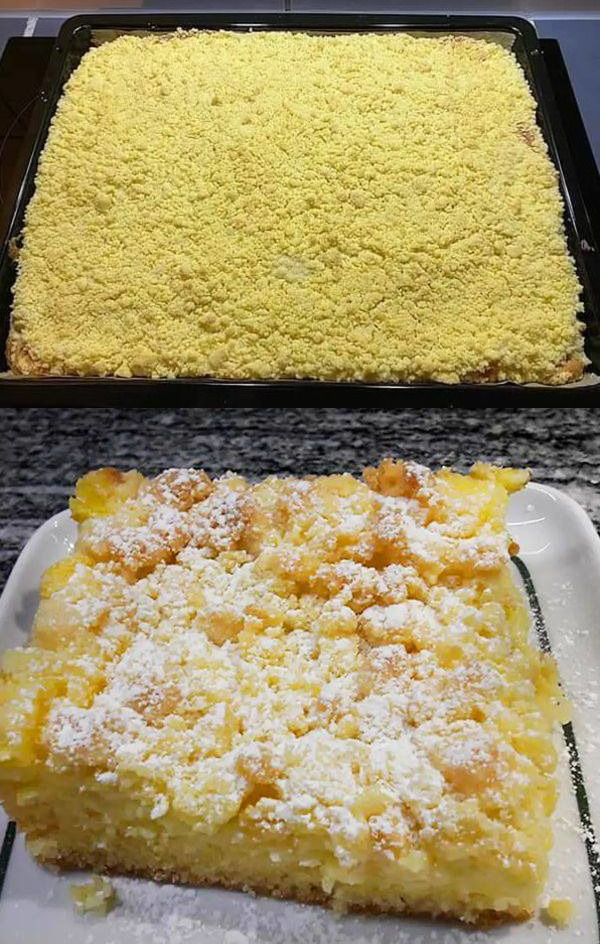 Streuselkuchen mit 2 Packung Vanillepudding und 40 Minuten Backzeit
