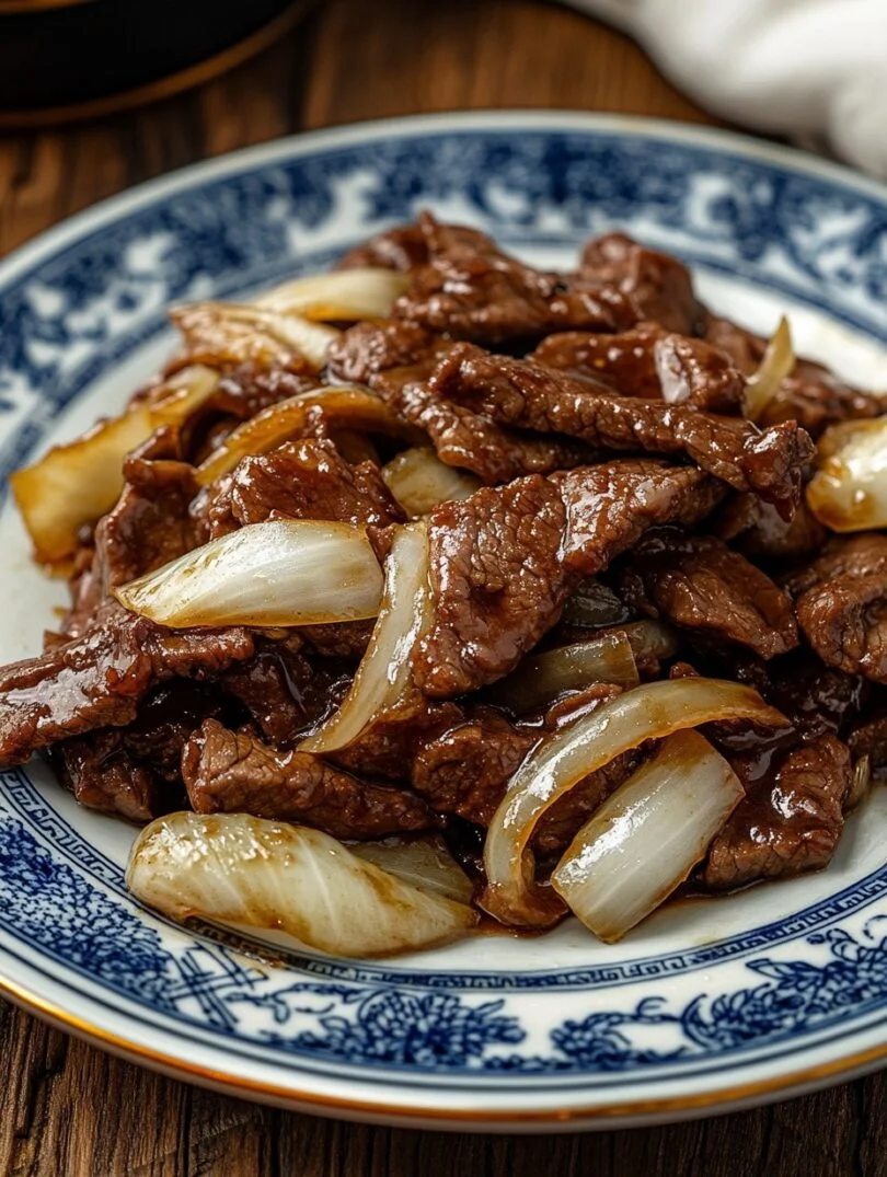 Karamellisiertes Rindfleisch mit Zwiebeln und Sojasauce