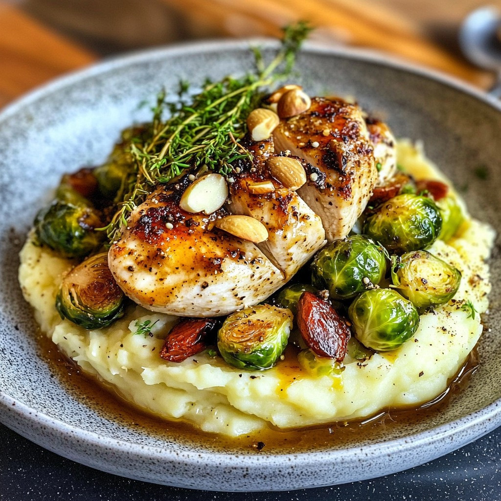 Gebratene Hähnchenbrust mit karamellisiertem Rosenkohl & Kartoffelstampf