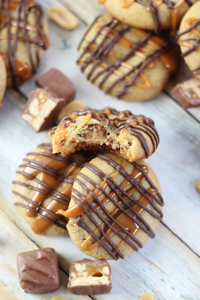Mit Snickers gefĂĽllte Erdnussbutterkekse
