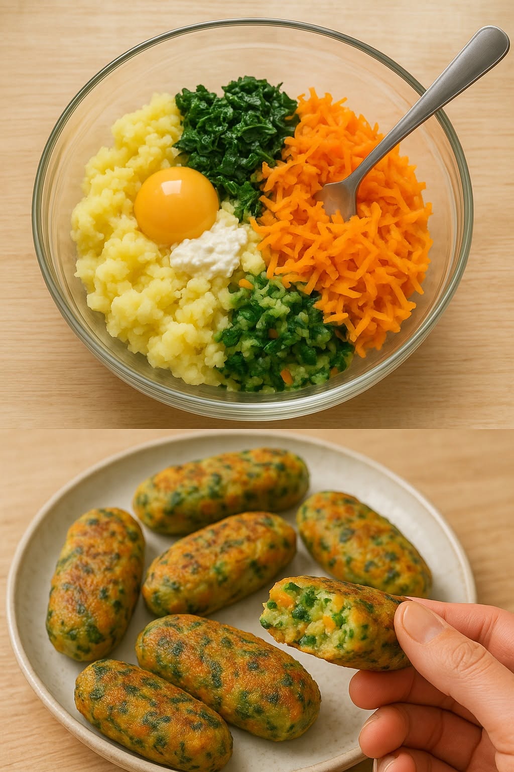 Kartoffel-Kroketten mit Spinat und Karotten 😋🥕🥬