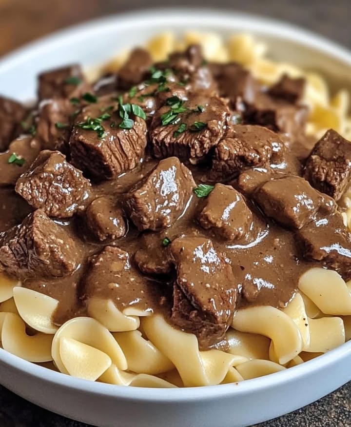 – 900 g Rindfleisch (Schmorbraten oder Sirloin-Tips), in mundgerechte Stücke geschnitten