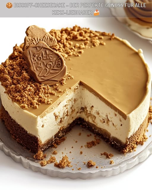 Cremiger Cheesecake mit einer knusprigen Biscoff-Kruste und einer süßen Biscoff-Schicht obendrauf – das perfekte Dessert für gemütliche Tage!