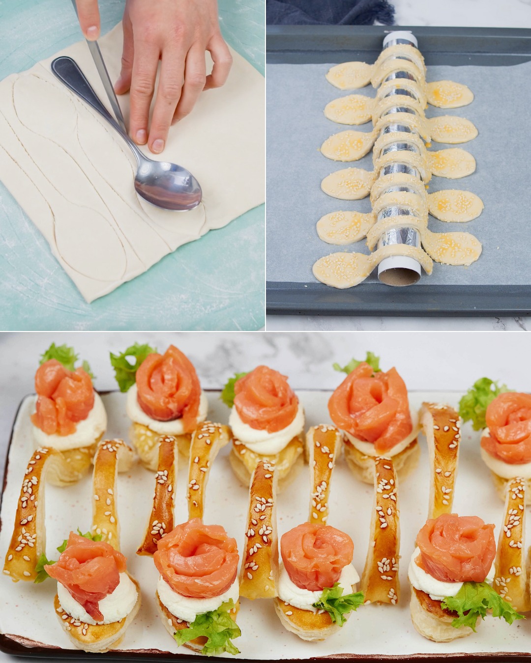 Blätterteiglöffel sind leichte und knusprige Häppchen, perfekt als Vorspeise, Aperitif oder Fingerfood zum Servieren während der Feiertage. Diese Blätterteiglöffel sind schnell und einfach zuzubereiten und können mit verschiedenen Zutaten gefüllt werden, von Käse über Gemüse bis hin zu Wurst oder Fisch. Dank ihrer Vielseitigkeit können sie individuell an den Geschmack der Gäste angepasst werden.