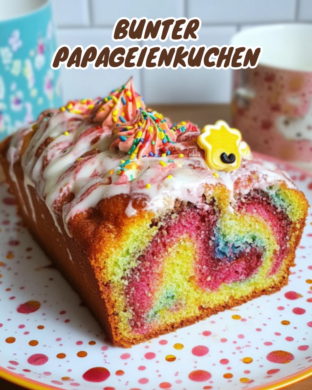 Dieser farbenfrohe Papageienkuchen bringt Freude auf jede Kaffeetafel! Saftiger Rührteig, gefärbt in verschiedenen Tönen, und ein süßer Zuckerguss machen ihn zum Highlight für Groß und Klein.