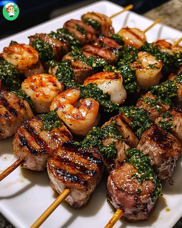 Zutaten:– 450 g Garnelen, geschält und entdarmt– 450 g Rindersteak (z. B. Sirloin), in 2,5 cm große Würfel geschnitten– 1 rote Paprika, in 2,5 cm große Stücke geschnitten– 1 grüne Paprika, in 2,5 cm große Stücke geschnitten– 1 Zwiebel, in 2,5 cm große Stücke geschnitten– 30 ml Olivenöl– Salz und Pfeffer nach Geschmack– 25 g … Read more
