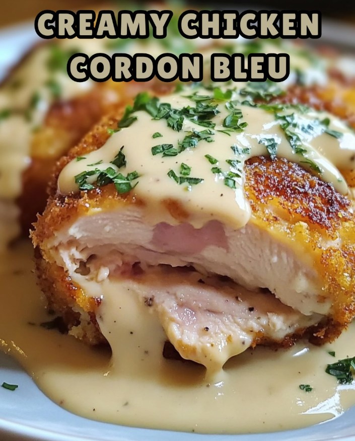 Ein saftiges Hähnchenbrustfilet gefüllt mit Schinken und geschmolzenem Käse, in knusprigem Paniermehl gebraten und mit einer cremigen Dijon-Soße serviert.