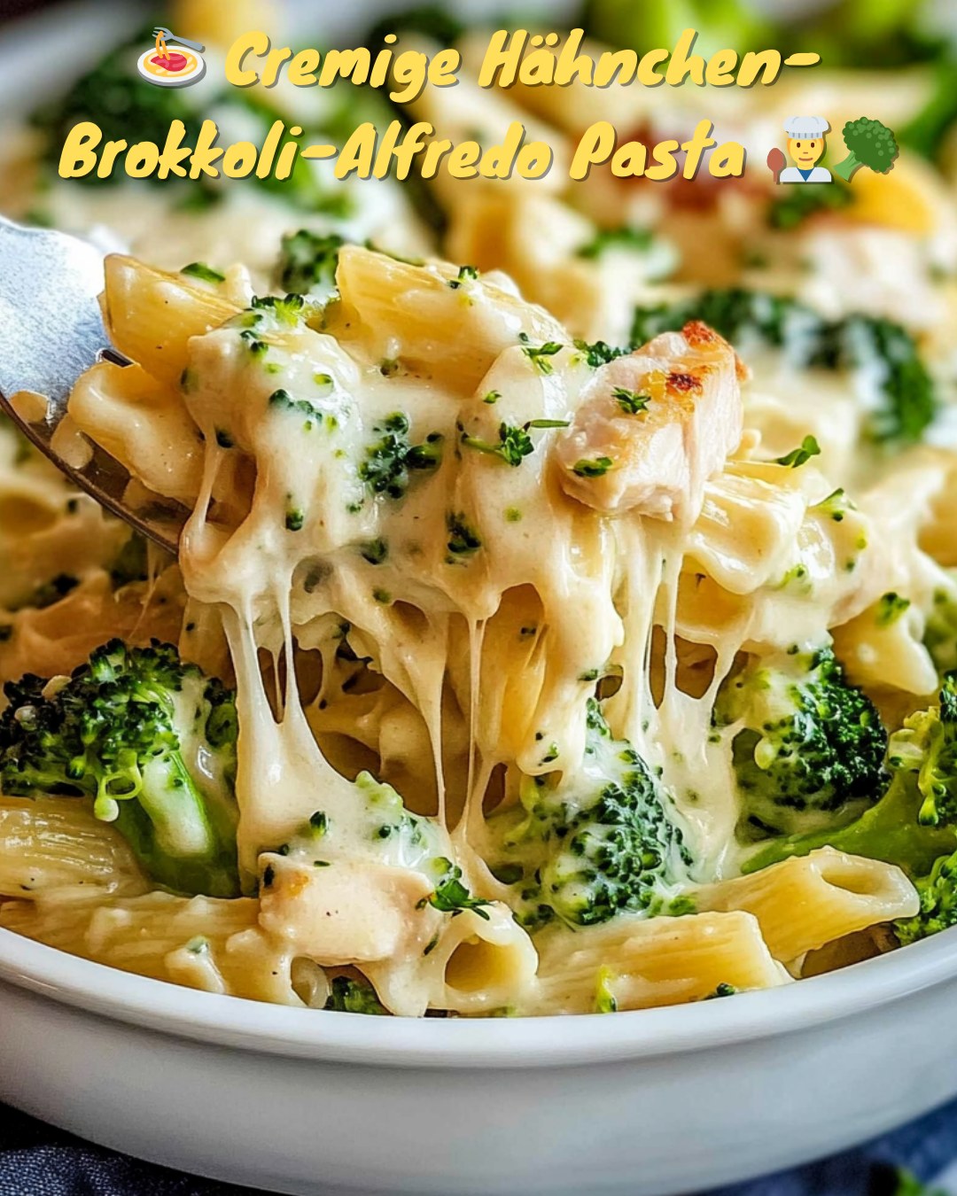 Schnelles und cremiges Pasta-Gericht mit Hähnchen, Brokkoli und einer köstlichen Alfredo-Sauce. 🍴