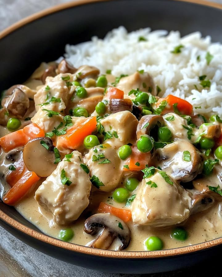 Cremige Hähnchen-Pfanne mit Reis