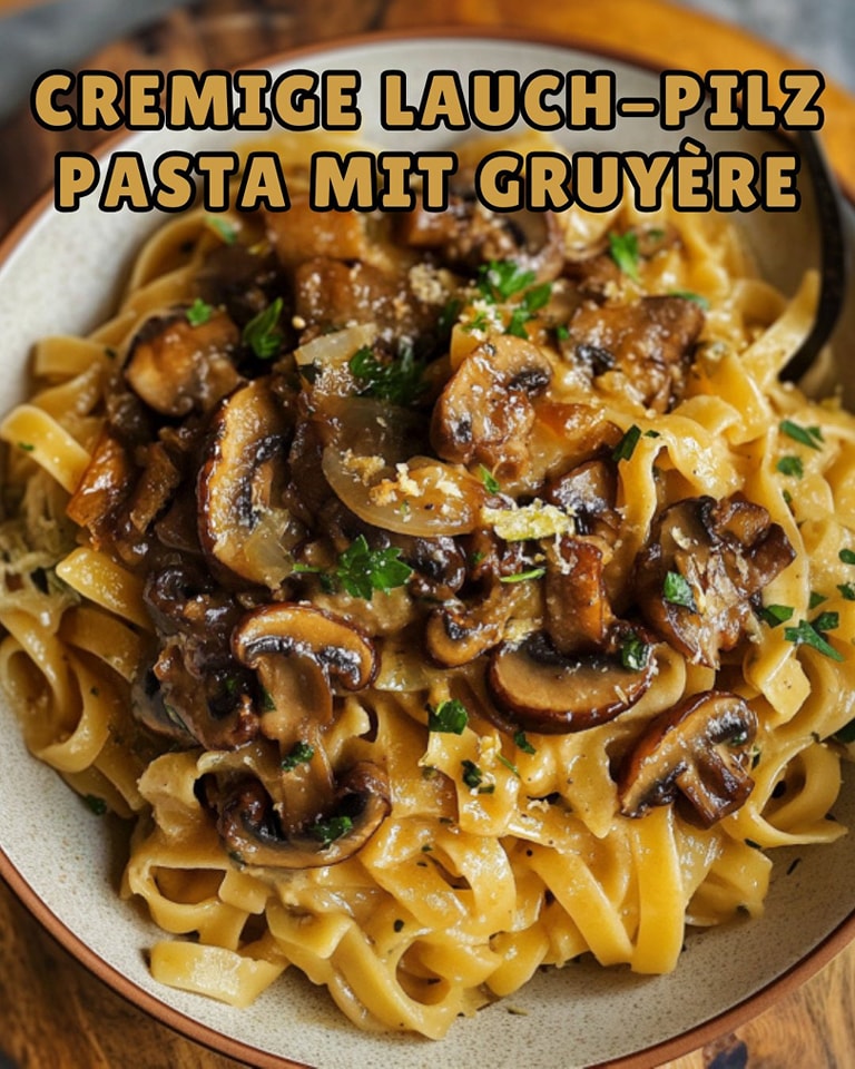 Samtige, karamellisierte Lauch-Pilz-Pasta mit nussigem Gruyère – ein perfektes, vegetarisches Wohlfühlgericht! Ideal für ein schnelles, geschmackvolles Abendessen.