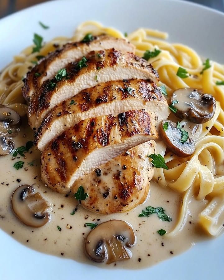 Cremige Pasta mit Hähnchen und sautierten Pilzen