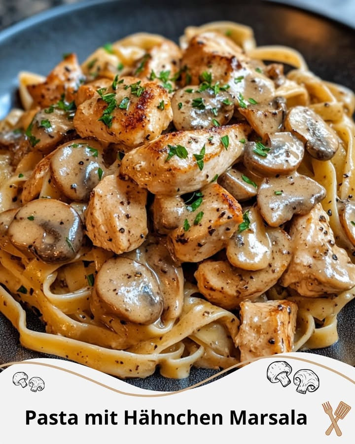 Cremige Pasta mit würzigem Hähnchen in -Soße