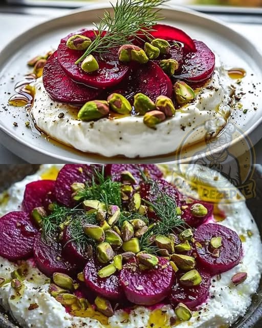 Stell dir vor: ein samtiger Käse-Teppich, darauf leuchtend rote Würfel, gekrönt mit knackigen Pistazien und frischem Dill – wie ein Gemälde in Essensform! Dieses Rezept ist:
