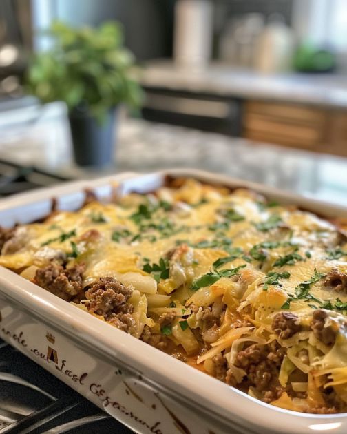 Als ich als kleines Mädchen im Herzen des Mittleren Westens aufwuchs, stand oft ein wohltuendes Kohlgericht auf unserem Tisch, besonders bei kühler Luft. Dieser kohlenhydratarme, ungefüllte Kohlauflauf bewahrt den Geist dieser traditionellen Aromen, ohne dass jedes Blatt aufwendig gefüllt werden muss. Er ist perfekt für alle, die den herzhaften, nostalgischen Geschmack von Kohlrouladen mögen, aber eine einfachere, schnellere Zubereitung bevorzugen. Außerdem ist es ein warmes und gesundes Gericht, ideal zum Teilen mit der Familie, besonders an einem kühlen Abend.