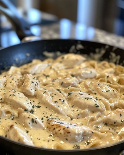 Cremiges Chicken Alfredo mit wenig Kohlenhydraten und Pasta