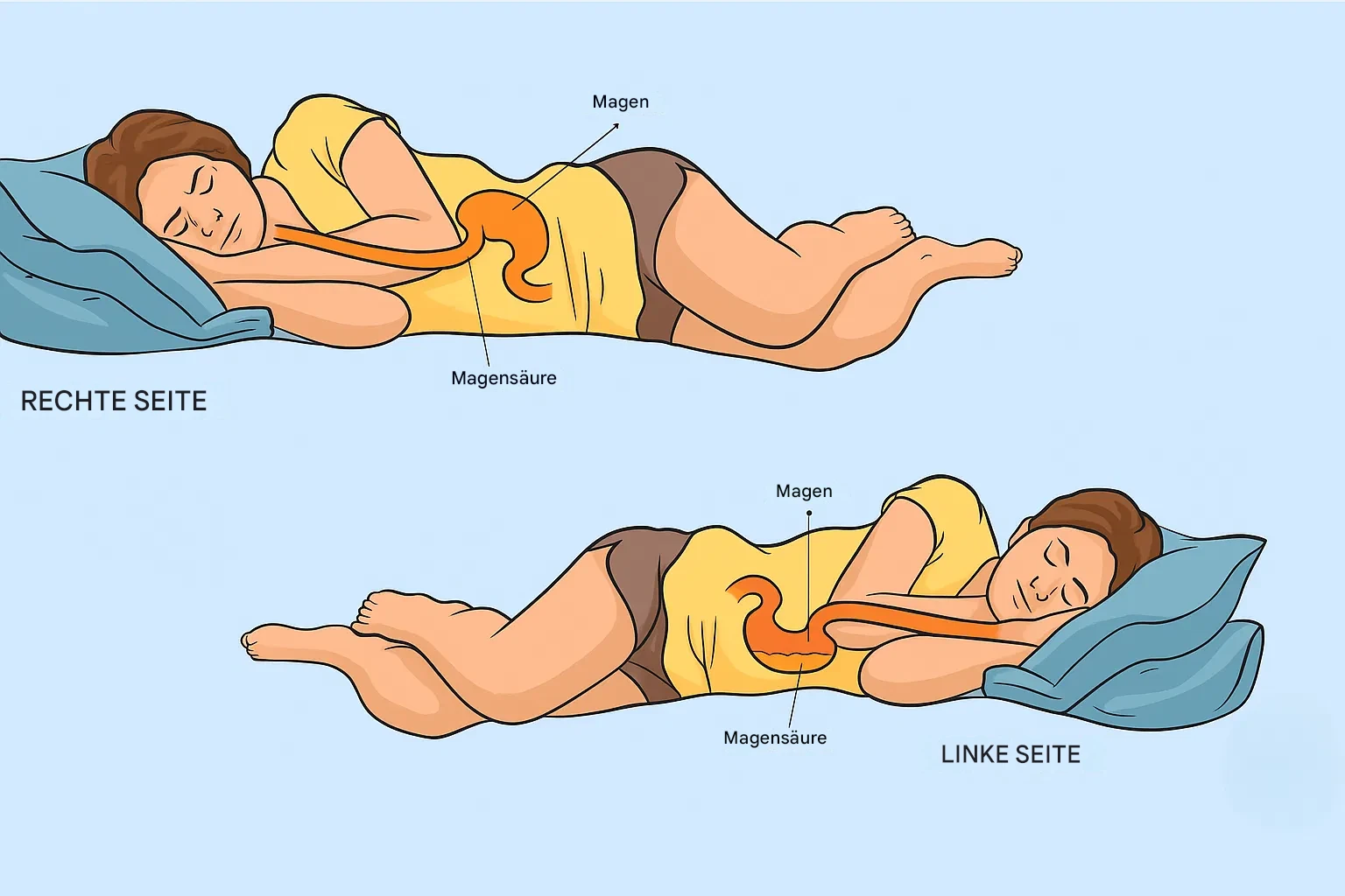 Magen- und Bauchspeicheldrüse finden sich auf der linken Körperseite. Wenn Sie auf dieser Seite schlafen, wird die Schwerkraft genutzt, um Nahrungsreste durch den Verdauungstrakt zu transportieren. Darüber hinaus verbessert sich der Fluss der Pankreasenzyme, was die Verdauung effizienter macht. Diese Position ist besonders hilfreich für Menschen mit Blähungen, Verdauungsstörungen oder Verstopfungen.