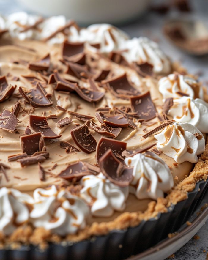 Stellen Sie sich vor: Sie suchen nach einem köstlichen Dessert, das Ihre Naschsucht stillt, ohne dass Sie den Ofen vorheizen oder sich mit genauen Abmessen herumschlagen müssen. Dann ist der No Bake Peanut Butter Pie genau das Richtige für Sie – ein üppiger, cremiger Genuss aus der Zeit, als Convenience Cooking Mitte des 20. Jahrhunderts immer beliebter wurde. Dieses Rezept ist eine Anspielung auf die amerikanische Liebe zur Erdnussbutter, einem Grundnahrungsmittel, das sich vom einfachen Brotaufstrich zur Starzutat für Desserts entwickelt hat. Seine Einfachheit macht ihn für Hobbyköche jeden Niveaus zugänglich – eine perfekte Kreation für die Tage, an denen Sie sich ein selbstgemachtes Dessert ohne die Komplexität des traditionellen Backens wünschen. Dieser köstliche Pie ist ideal für spontane Zusammenkünfte. Er bietet die cremige Geborgenheit von Erdnussbutter gepaart mit einem buttrigen Boden und zaubert garantiert jedem ein Lächeln ins Gesicht, der Lust auf eine süße Auszeit hat.