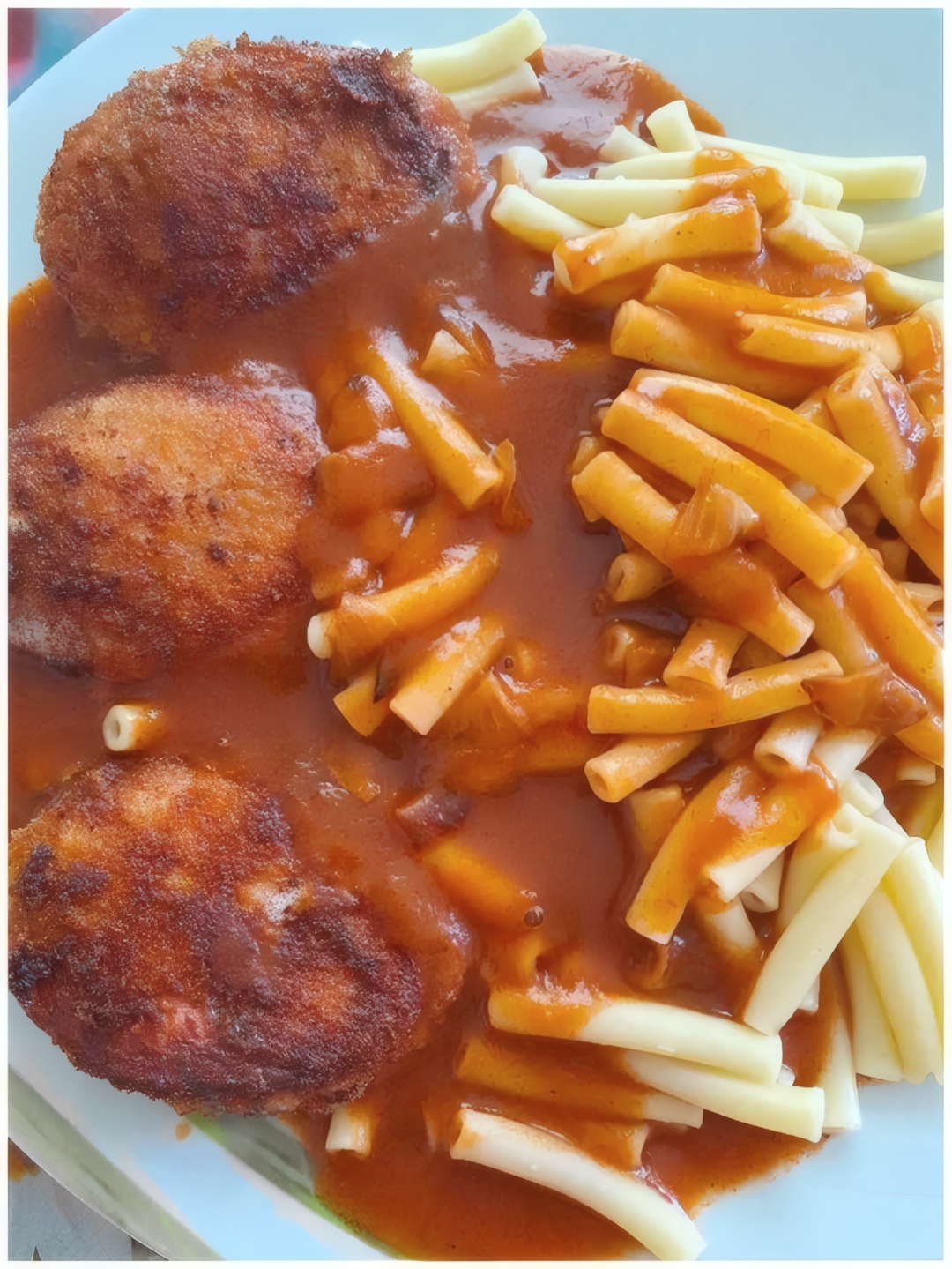 DDR Makkaroni mit Tomatensoße und Jägerschnitzel