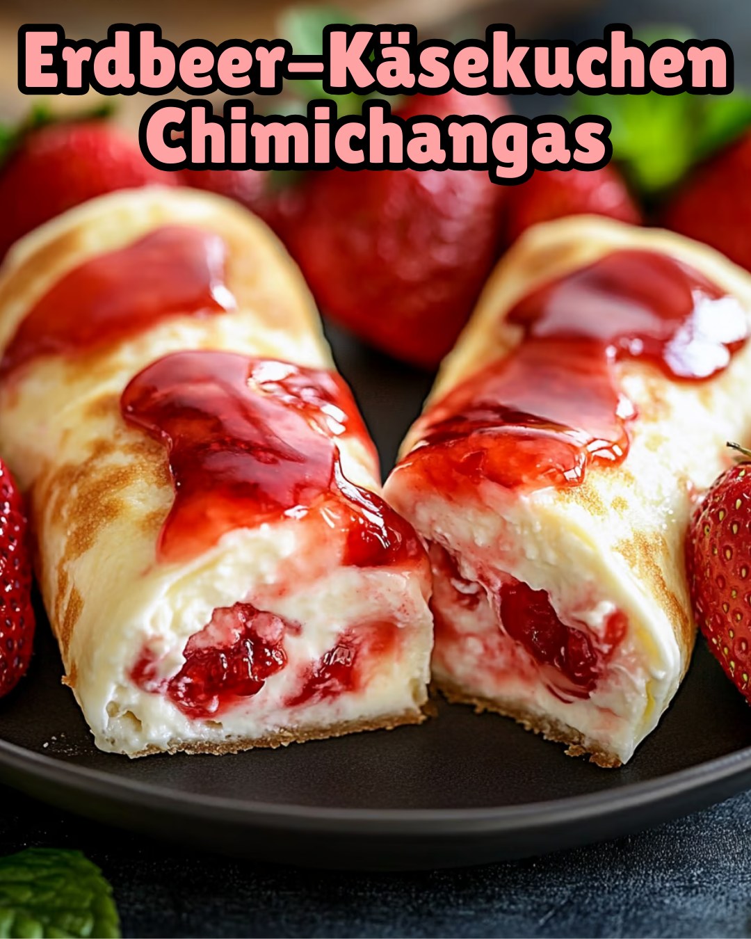 Cremiger Käsekuchen trifft auf fruchtige Erdbeermarmelade – eingewickelt in eine knusprige Tortilla. Ideal als Dessert oder süßer Snack für zwischendurch!