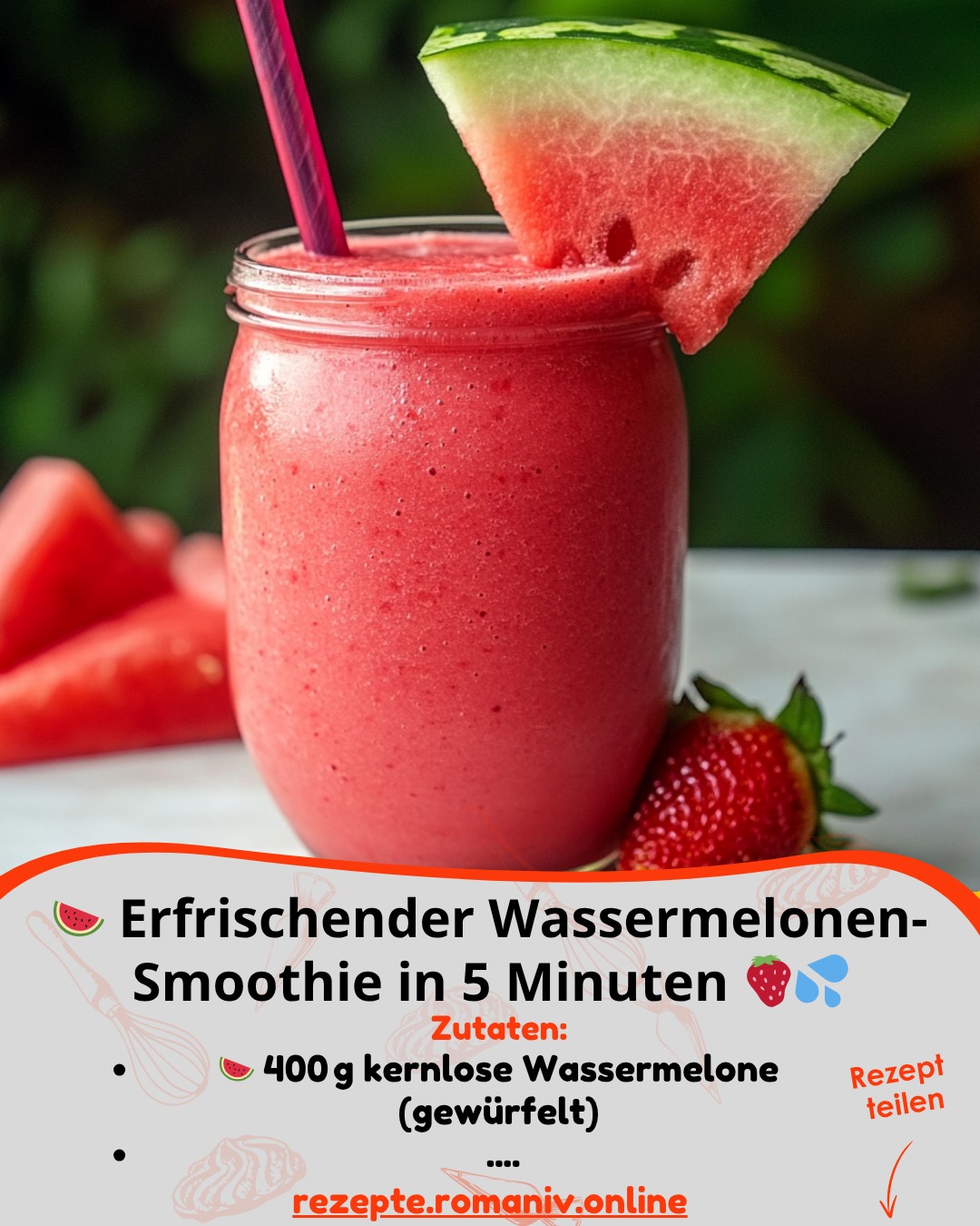 Wenn die Temperaturen steigen und die Sonne vom Himmel lacht, gibt es kaum etwas Erfrischenderes als einen kühlen Smoothie. Besonders beliebt ist der Wassermelonen-Smoothie, der nicht nur durch seinen süßen Geschmack überzeugt, sondern auch durch seine einfache Zubereitung.Die Kombination aus saftiger Wassermelone, frischen Erdbeeren und einem Hauch Minze macht diesen Smoothie zum idealen Begleiter an heißen Tagen. Ob als schneller Snack zwischendurch oder als gesunder Start in den Tag – dieser Drink ist vielseitig einsetzbar.In diesem Artikel zeigen wir Ihnen, wie Sie in nur fünf Minuten einen köstlichen Wassermelonen-Smoothie zubereiten können. Zudem geben wir Tipps zur Variation und erklären, warum dieser Smoothie nicht nur lecker, sondern auch gesund ist.Entdecken Sie das ultimative Rezept für einen erfrischenden Wassermelonen-Smoothie und bringen Sie Sommerfeeling in Ihr Glas!