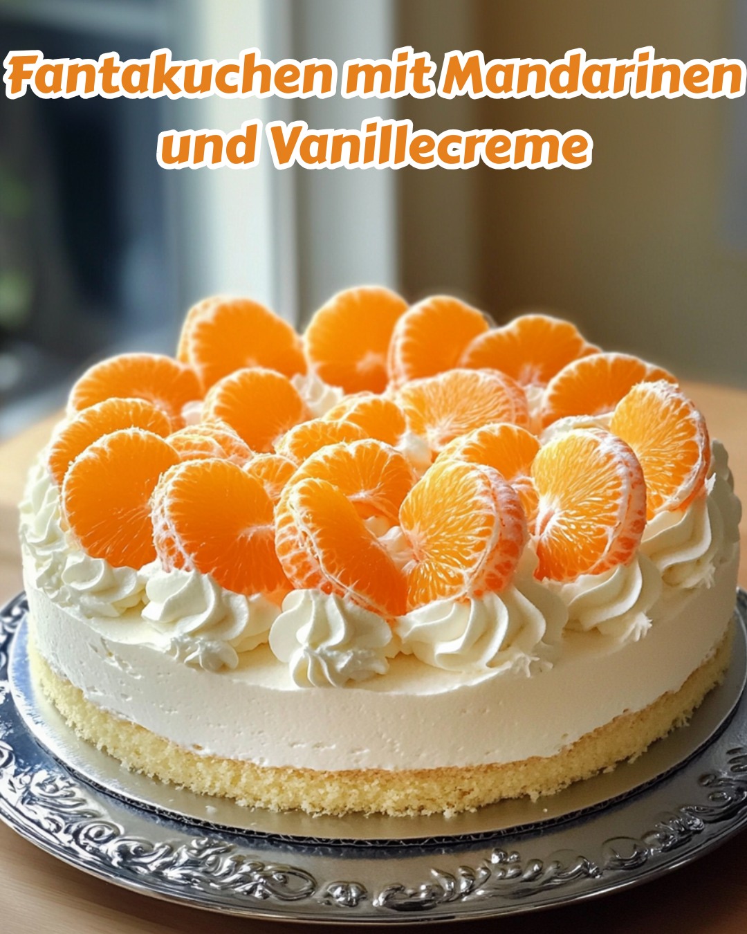 Eier werden mit Zucker schaumig geschlagen, Fanta und Öl eingerührt, dann Mehl untergehoben. Nach dem Backen und Abkühlen wird Vanillecreme aufgetragen und mit Mandarinen dekoriert.