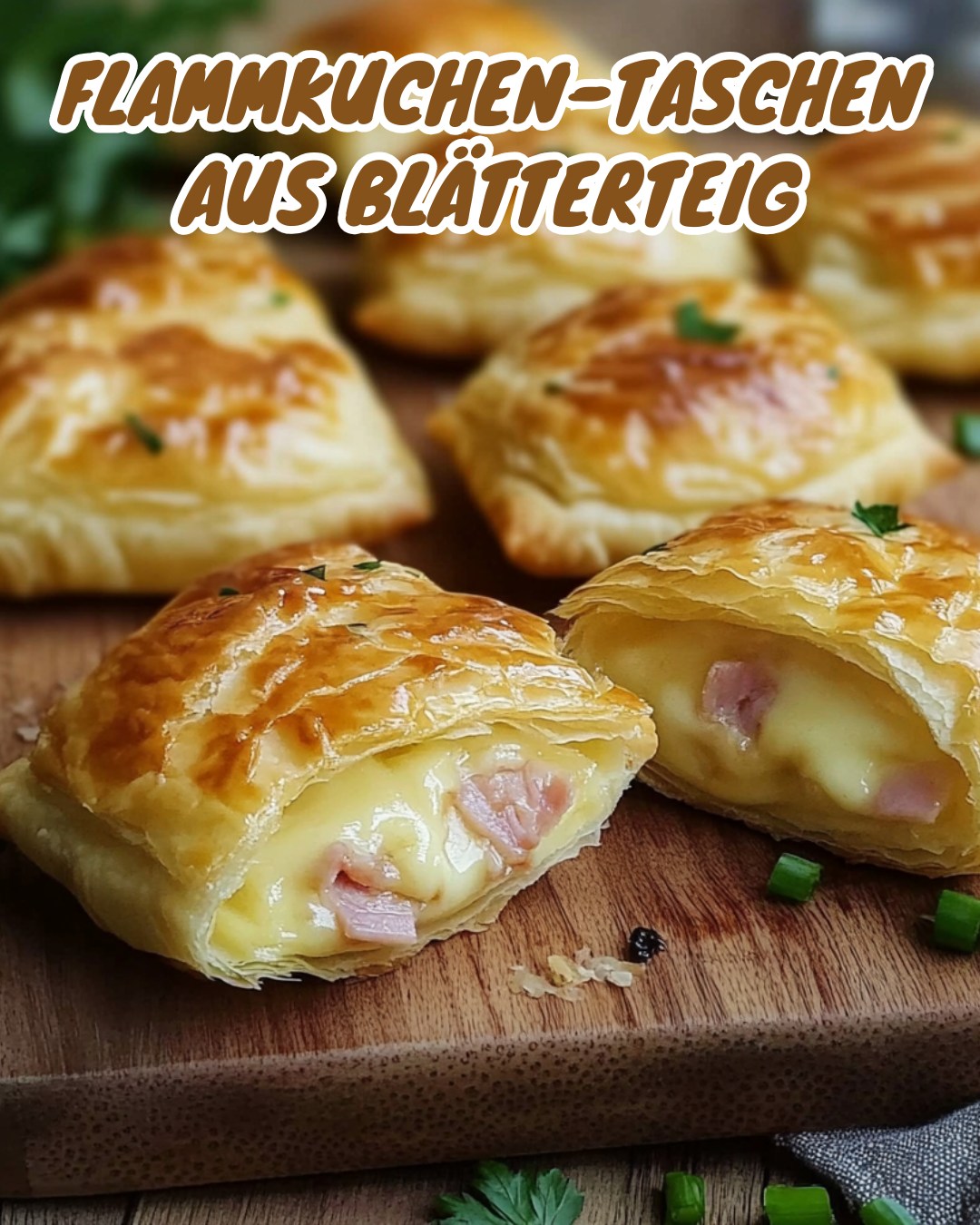 Kurzbeschreibung: Knuspriger Blätterteig, herzhafte Füllung aus Schmand, Schinken und Käse – perfekt für alle!