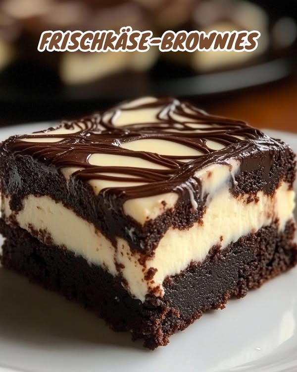Saftige Brownies mit cremiger Frischkäse-Marmorierung und knackiger Schokoladenglasur – ein unwiderstehlicher Genuss für Schokofans.
