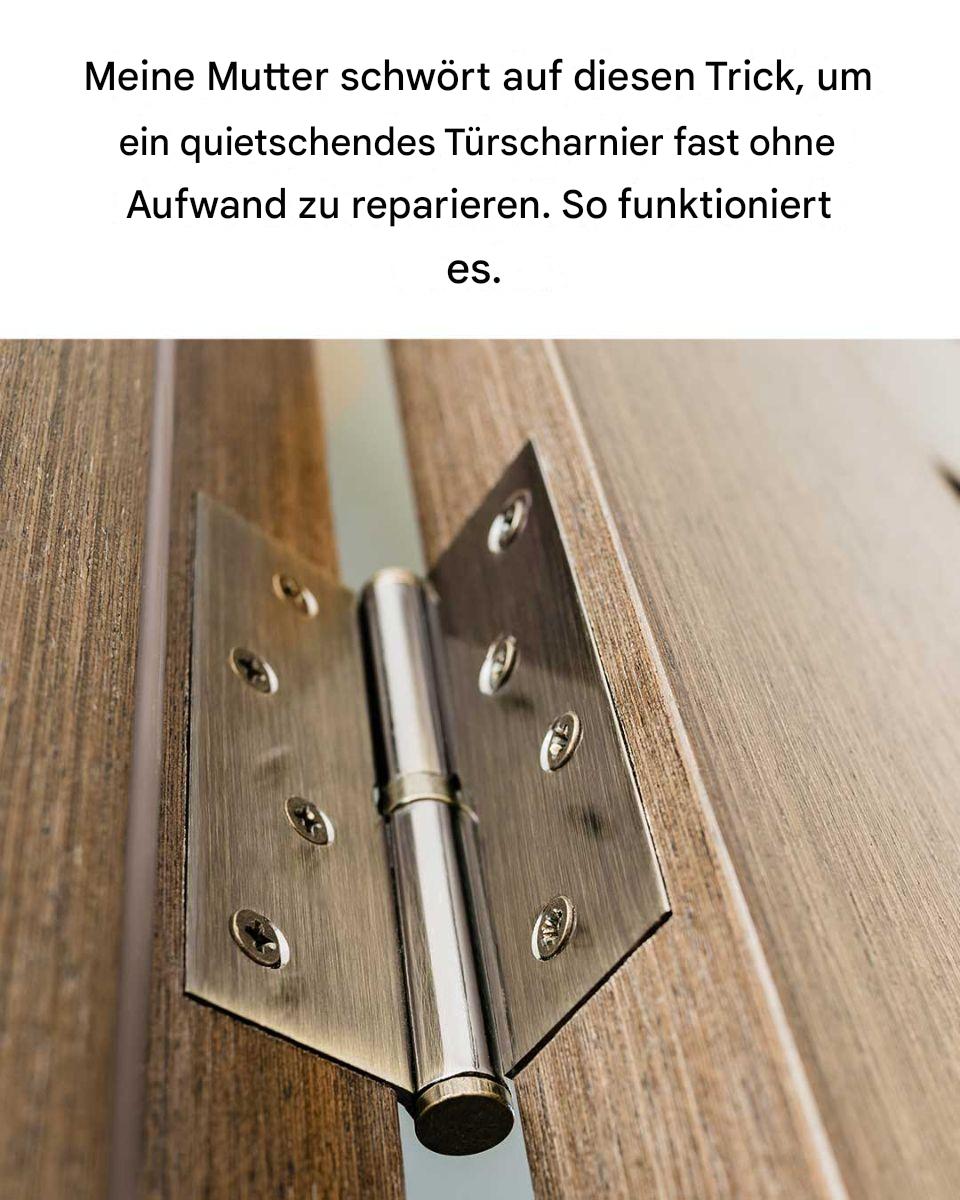 Das kennen wir alle: Man versucht, sich leise in einen Raum zu schleichen, aber das Türscharnier verrät einen mit einem lauten Quietschen. Das ist ein häufiges Ärgernis im Haushalt, das die Ruhe in Ihrem Zuhause stören kann. Es gibt zwar viele Lösungen, aber meine Mutter hat einen Trick, der fast keinen Aufwand erfordert und jedes Mal wie am Schnürchen klappt.
