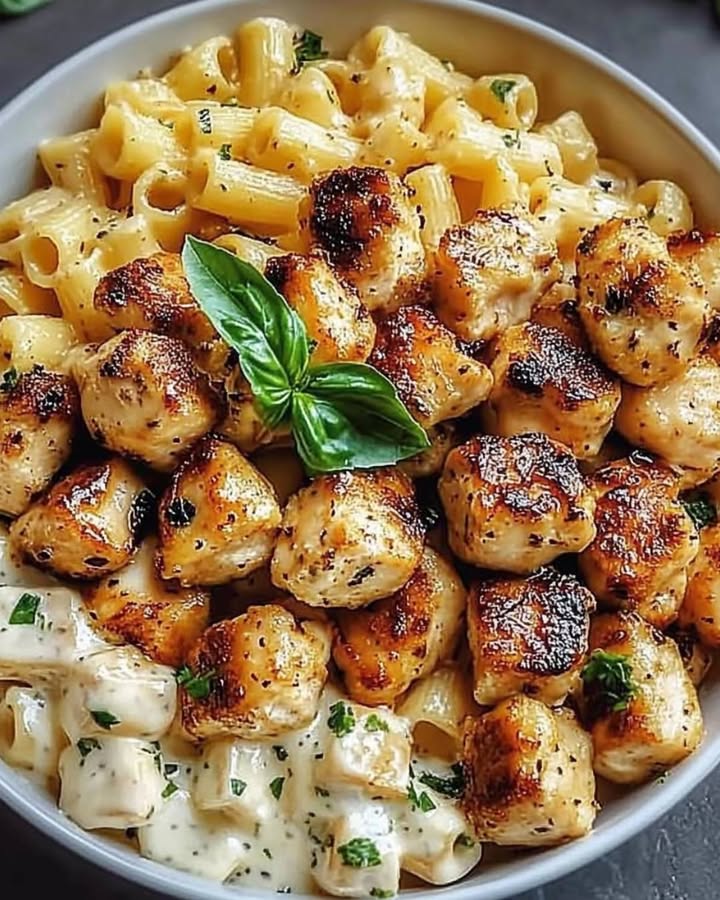 Garlic Butter Chicken Bites mit cremigen Parmesan-Pasta