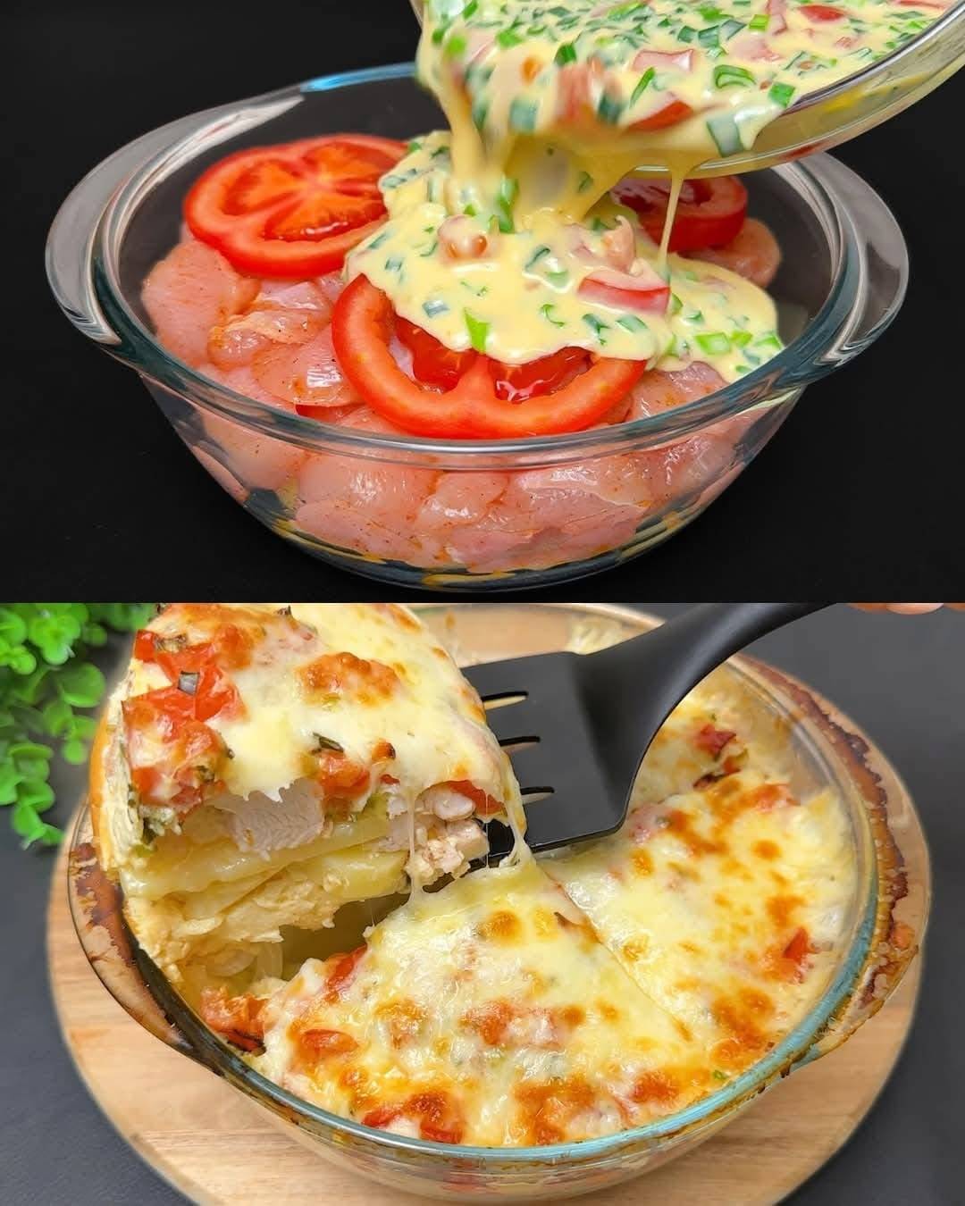 Dieser gebackene Hähnchen-Kartoffel- Auflauf ist ein einfaches und köstliches Familienessen, das sich mit wenigen Zutaten einfach zubereiten lässt. Egal, ob Sie ein Abendessen veranstalten oder eine gemütliche Mahlzeit für die ganze Familie suchen – dieser Auflauf wird garantiert jeden Gaumen verwöhnen. Die Kombination aus saftigem Hähnchen, zarten Kartoffeln und cremigem Käse ergibt ein perfektes Gericht für jeden Anlass.
