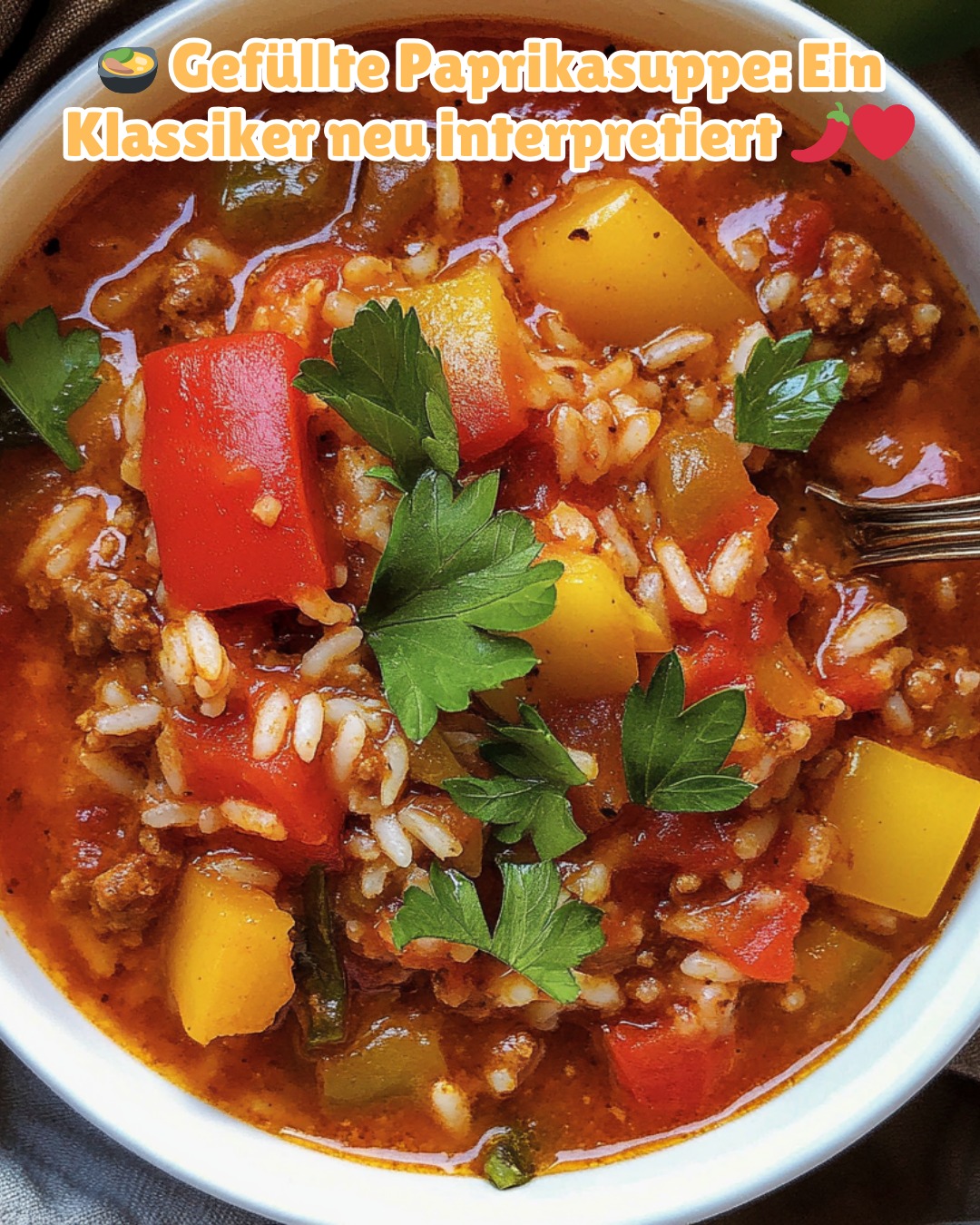 Würzige, herzhafte Suppe mit Paprika, Hackfleisch, Tomaten und Reis – wohltuend lecker!