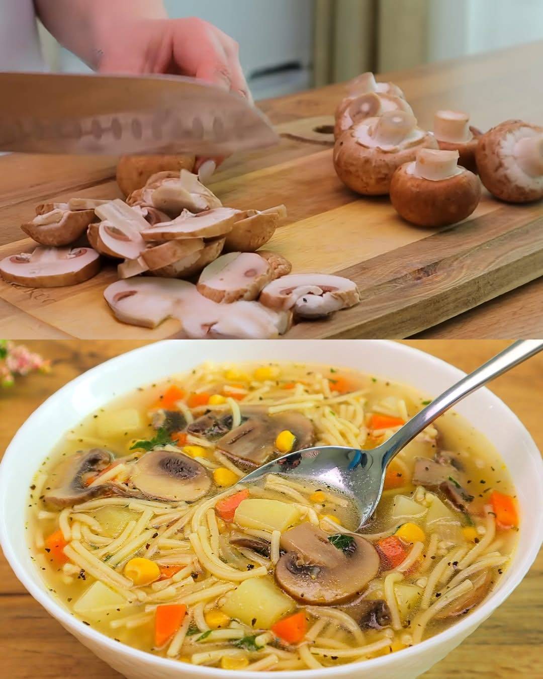 Diese Gemüsesuppe mit Nudeln ist ein wohltuendes und nahrhaftes Gericht mit verschiedenen Gemüsesorten und herzhaften Nudeln. Perfekt für jede Jahreszeit: Diese leichte und dennoch sättigende Suppe ist eine hervorragende Wahl für Mittag- oder Abendessen. Die Kombination aus Kartoffeln, Karotten, Mais und Pilzen sorgt für ein reichhaltiges Geschmacksprofil, während Basilikum für eine frische Note sorgt. Die Nudeln machen die Suppe noch sättigender und machen sie zu einem vollwertigen Eintopfgericht. So genießen Sie die Vorzüge von Gemüse in einer warmen, gemütlichen Schüssel.