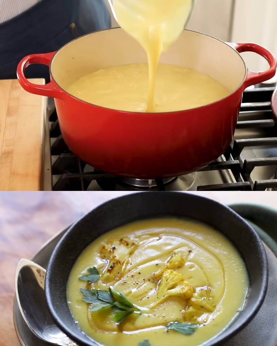 Befolgen Sie diese Schritt-für-Schritt-Anleitung, um diese geschmeidige, cremige und köstliche geröstete Blumenkohlsuppe zuzubereiten .