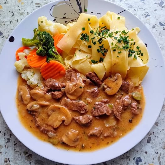 Geschnetzeltes vom Rind mit Beilagen