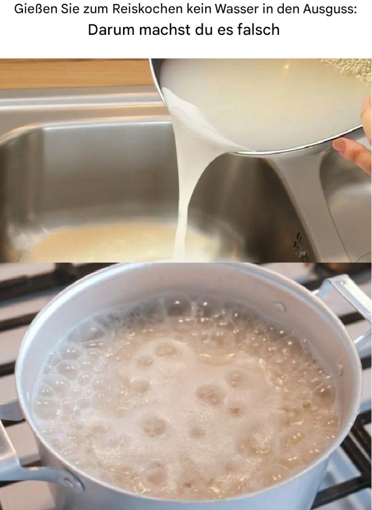 Gießen Sie niemals Reiskochwasser in den Ausguss. Hier erfahren Sie, warum.