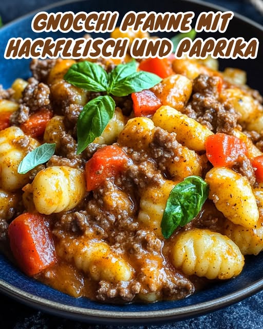 Cremige Gnocchi treffen auf würziges Hackfleisch und knackige Paprika – ein Genuss für alle! 😋