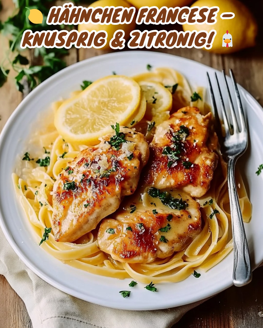 Knuspriges Hähnchenfilet trifft auf eine herrlich cremige Zitronen-Butter-Sauce.