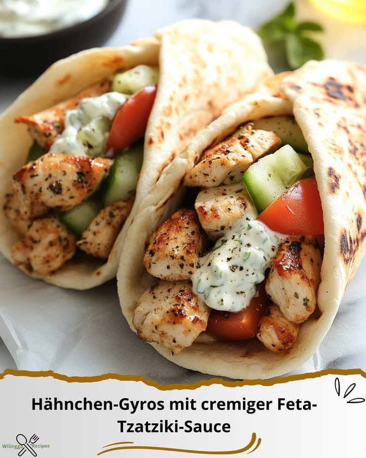 Hähnchen-Gyros mit cremiger Feta-Tzatziki-Sauce