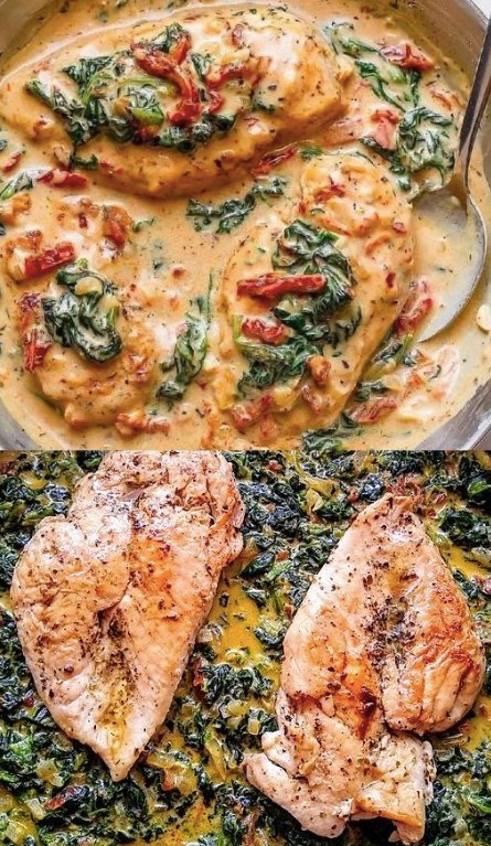 Hähnchen in cremiger Spinat-Parmesan-Soße, Schnell einfach und Gesund